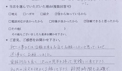 電話対応も良く、沢山の見本を持って見積りに来て下り、私共の注文を快よく了解して下さり、訪問時間も正確で手早く仕上げて下さいました。
